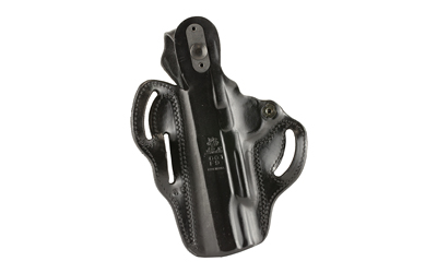 The firearm rides high and is presented at an optimum draw angle. Its thumb break and exact molding, together with a tension device, allows for a secure and highly concealable carry. Belt slots are 1 3/4″ wide. Some models with two belt slots and without tension device.